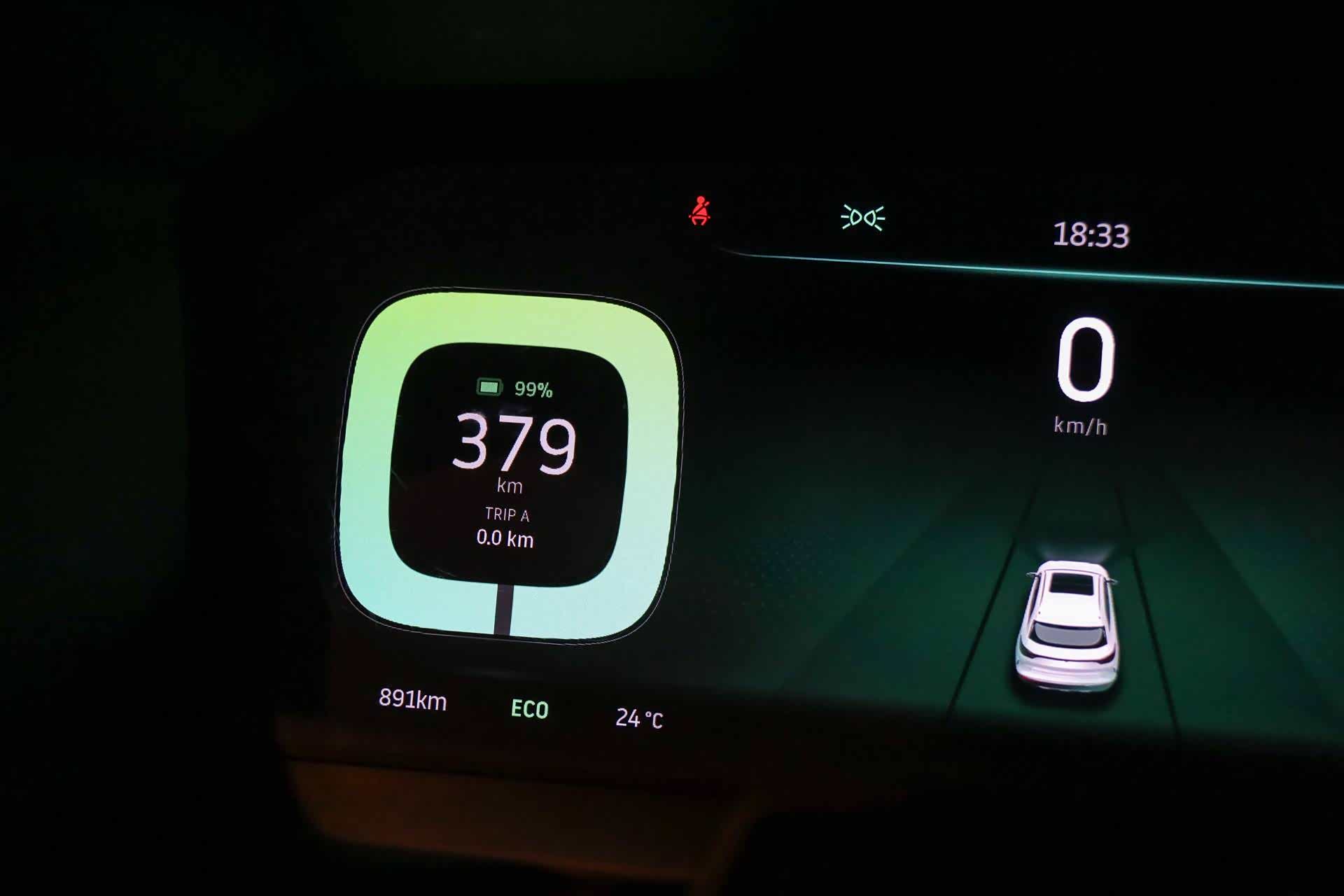 从广州出发时,剩余电量 99% ,剩余续航里程 379km 。