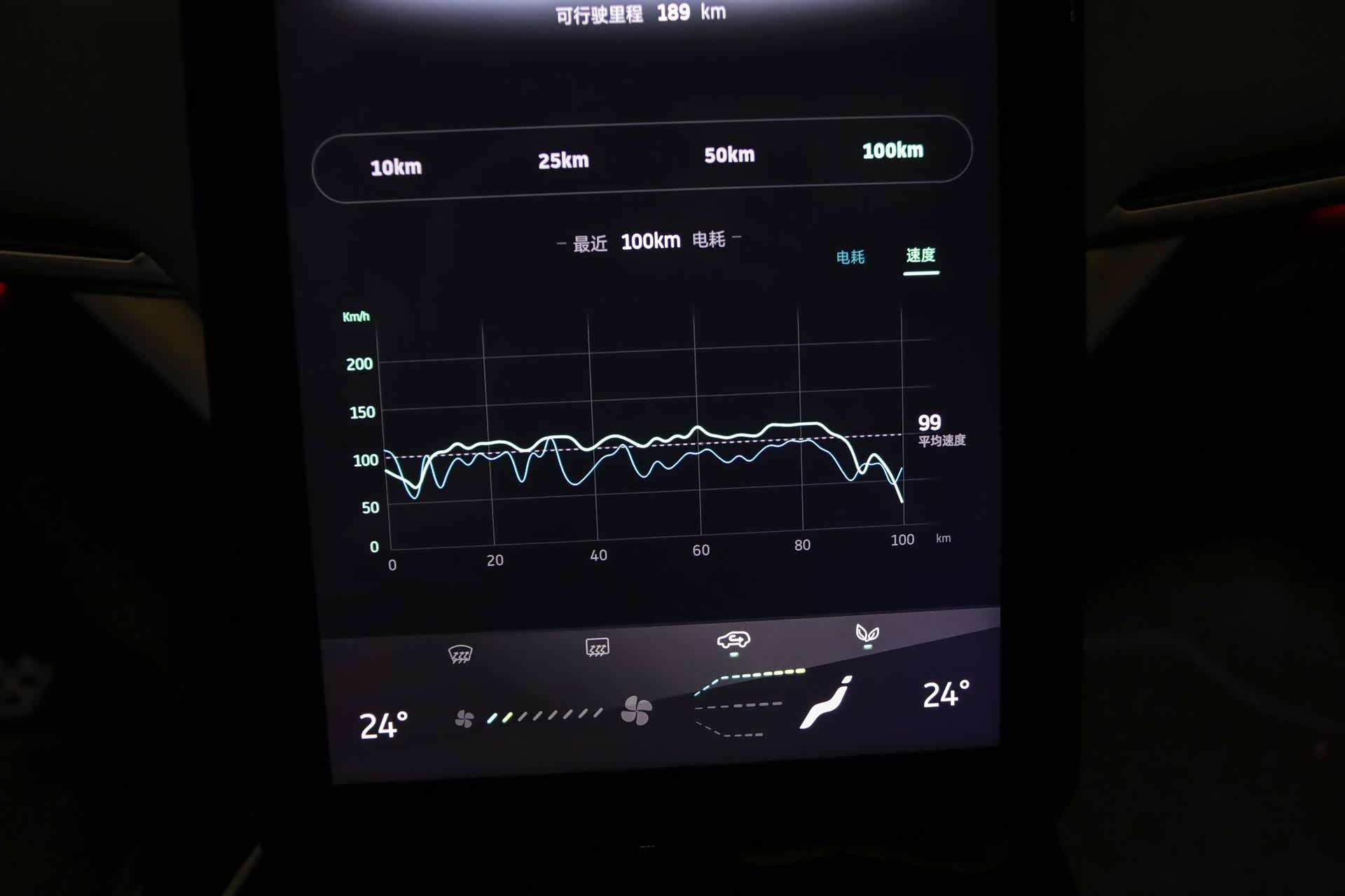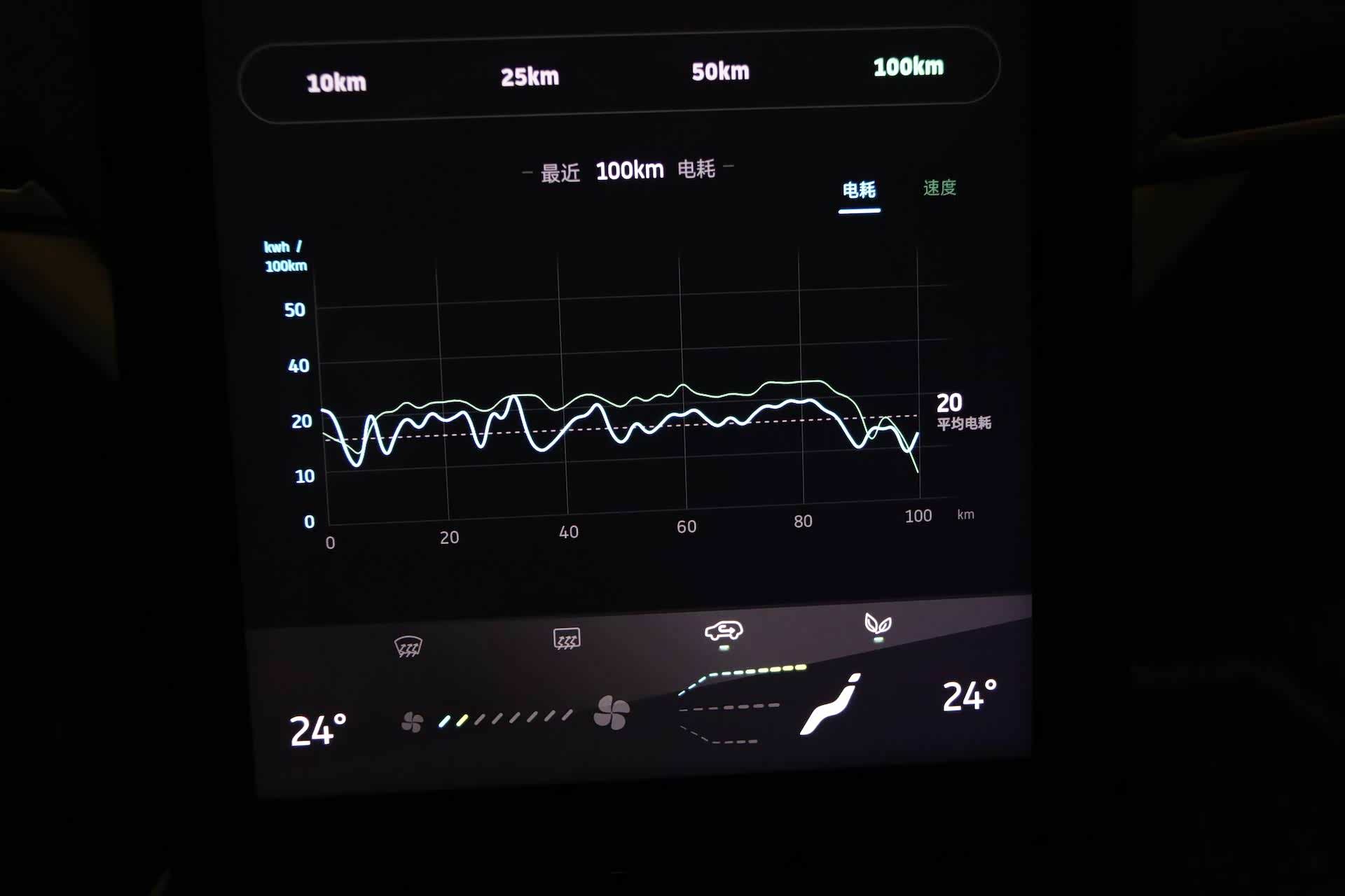 全程空调开 24 度,两挡风。威马 EX5 的空调制冷效果非常迅速,不过这也会在一定程度上影响续航里程。