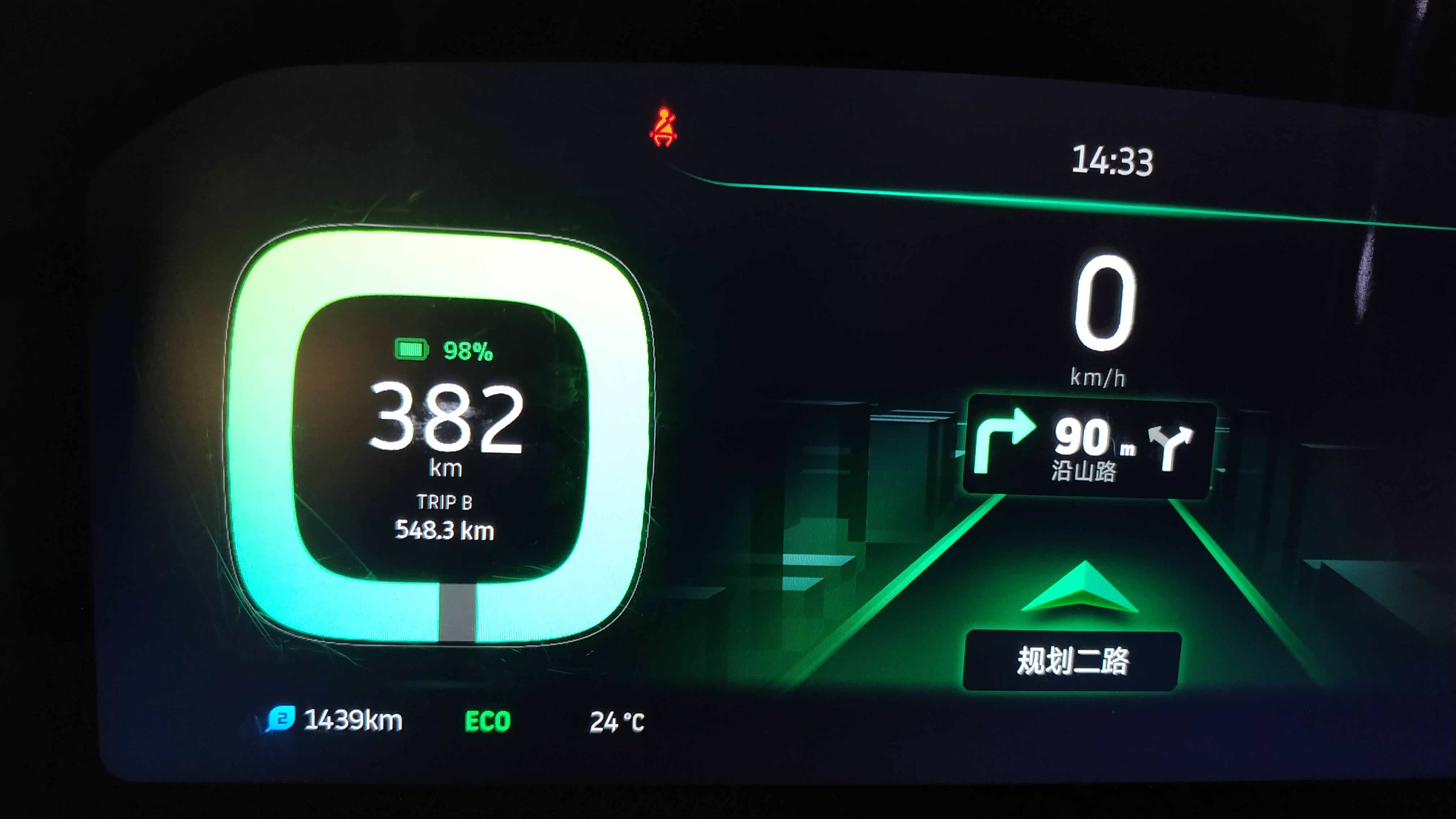 出发时剩余电量 98% ,表现剩余续航 382km 。