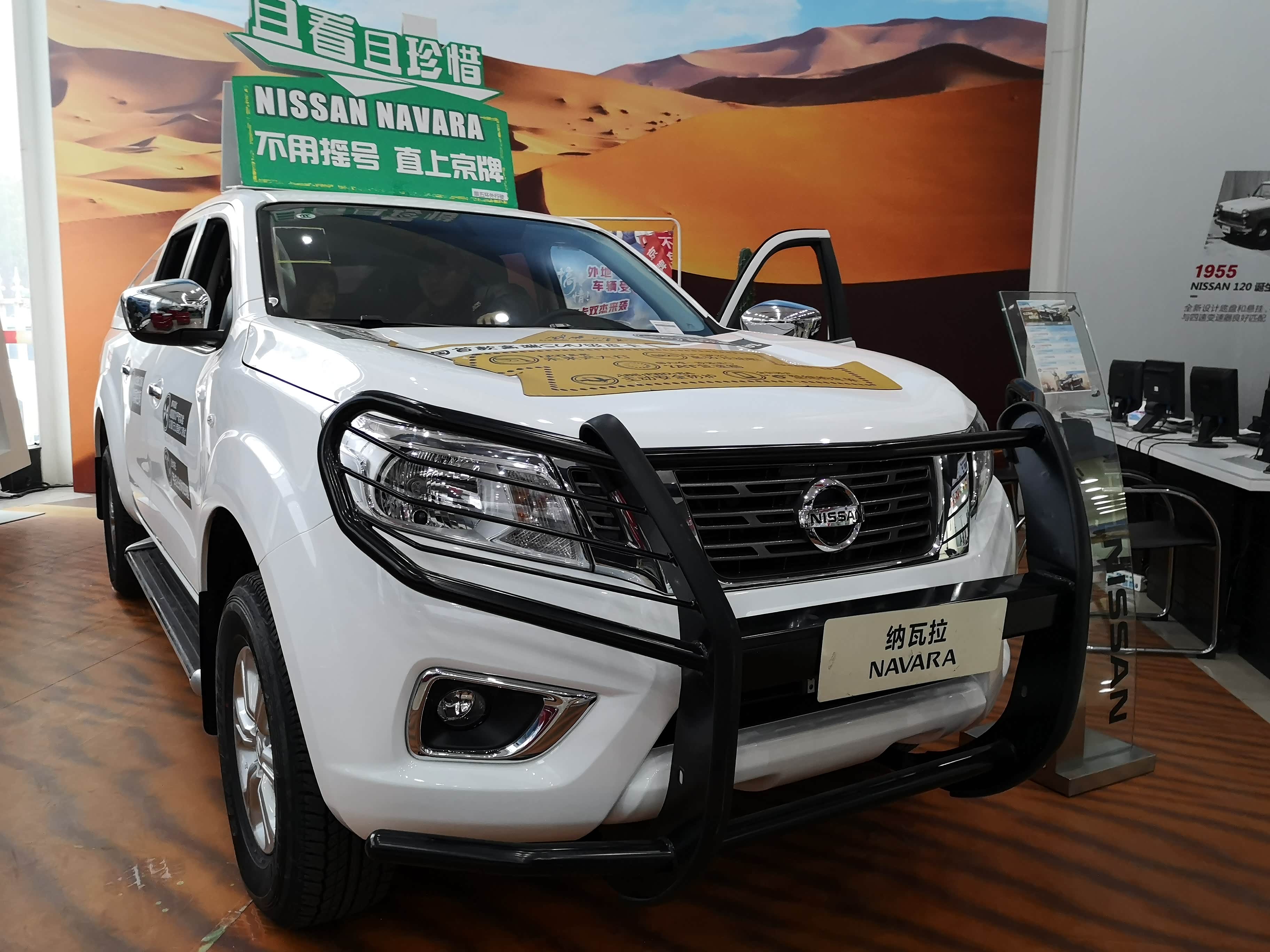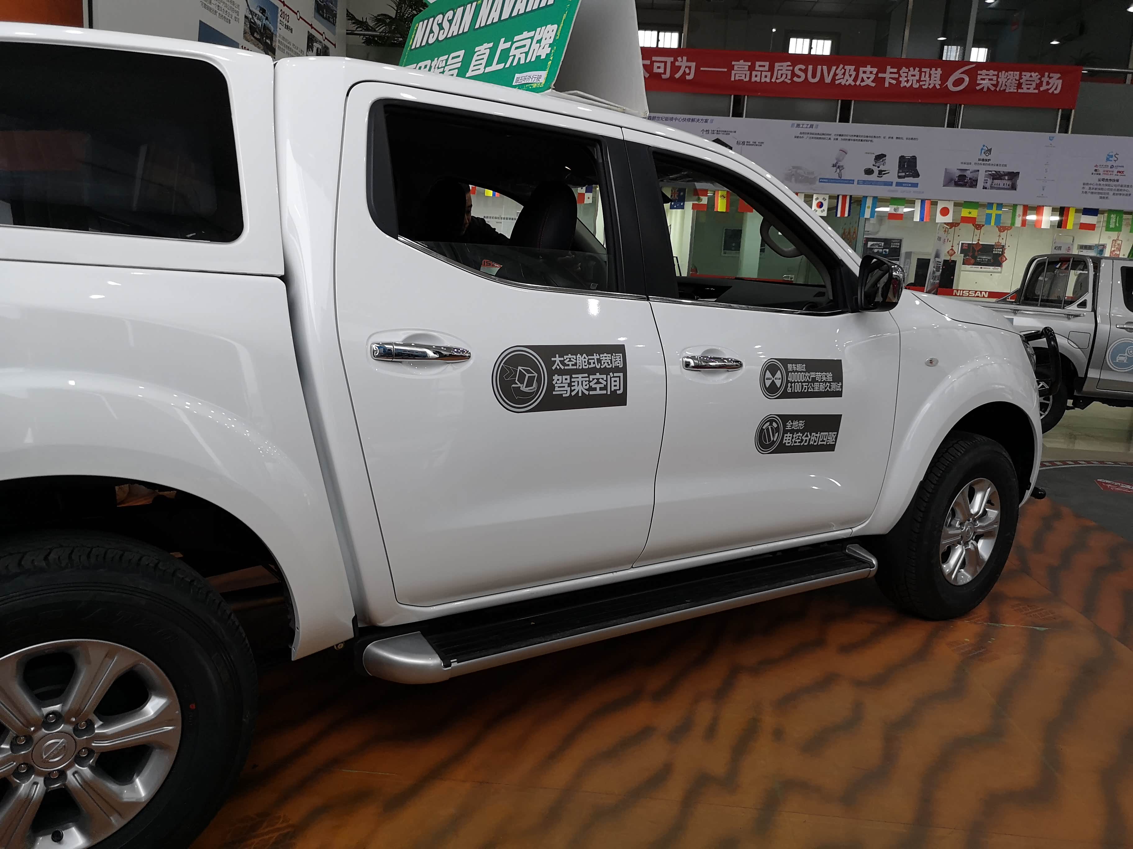 郑州日产的4S店内一般都会有可选改装的套件,一般都有外观、轻包围、轮毂轮胎、悬挂等。从前面看这辆车前脸加装了保险杠,让这款皮卡更显个性。