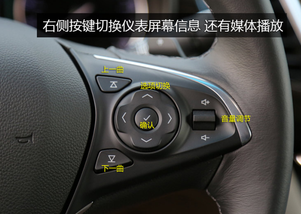 别克gl8方向盘说明,方向盘按键可以调节汽车的音响系统,可以调看行车电脑的各项内容,如瞬间油耗、行驶里程、剩余燃油可行驶里程等。多功能方向盘的好处在于驾驶员可以直接在方向盘上操控车内很多的电子设备,从而不需要在中控台上去寻找各类按钮,可以更专心的注视前方,大大提高行车的安全性。这本是属于中型车的装备随着技术的进步也逐渐向家用车转移。近期上市的多款小车/紧凑型车都装备了这一功能。尽管大部分都仅限于音响控制,但对于家用车而言为它提供不少行车的安全性。