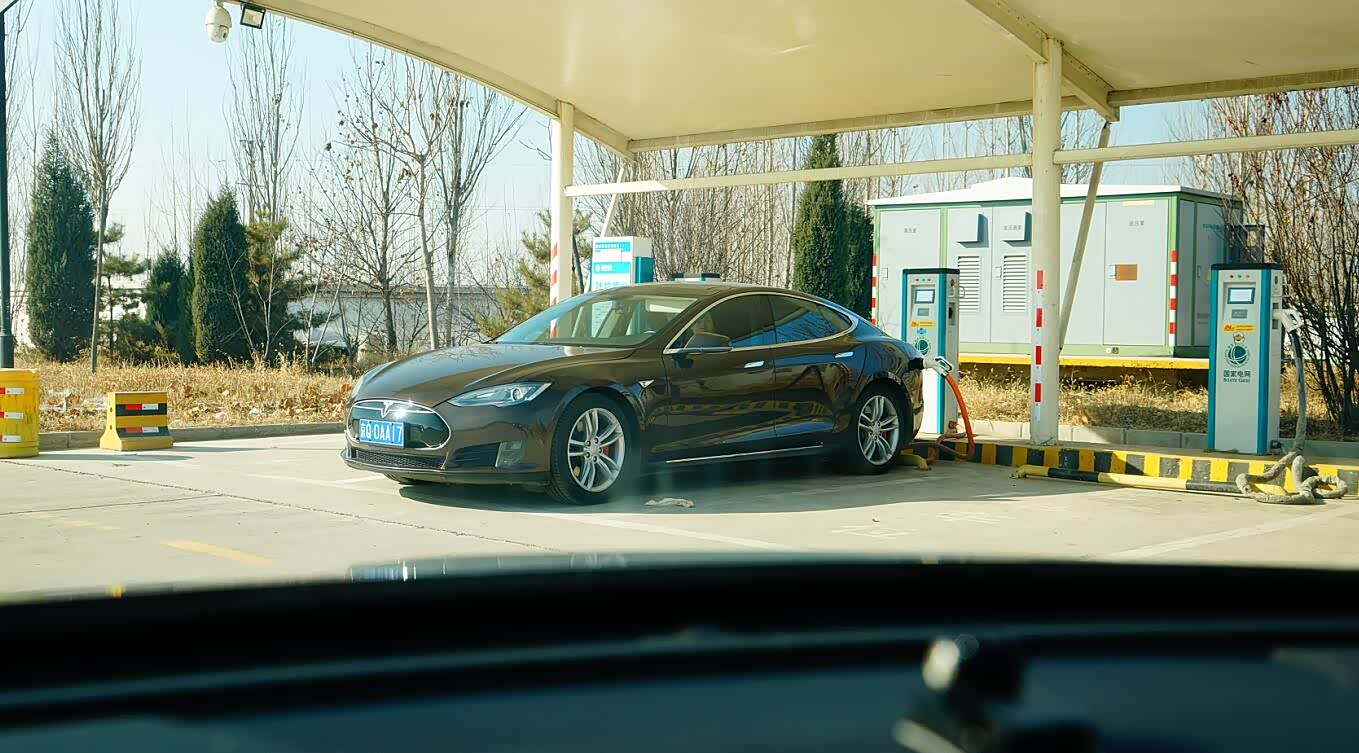 就在直播过程中,行驶至京开-大广高速河北段某服务区,笔者遇到了使用国家电网充电的特斯拉S。