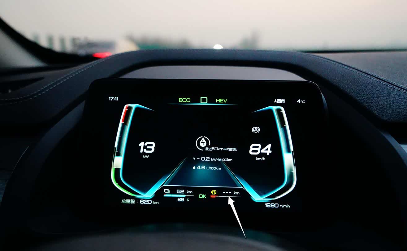 根据以往传统车剩余燃油报警灯闪烁,剩余续航里程为50公里的设定看,笔者驾驶的秦Pro DM的剩余燃油报警开关即将被触发。