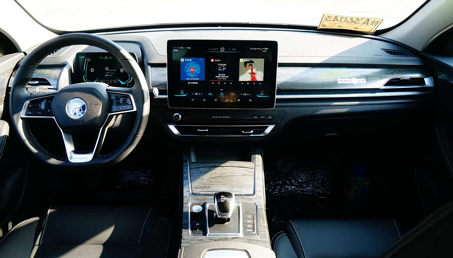 秦Pro DM的内饰也随整车性能的提升,变得更符合“主流大众”的审美设定。可以旋转的PAD“大屏”,更成为很多车主“多玩一小时”的配置。