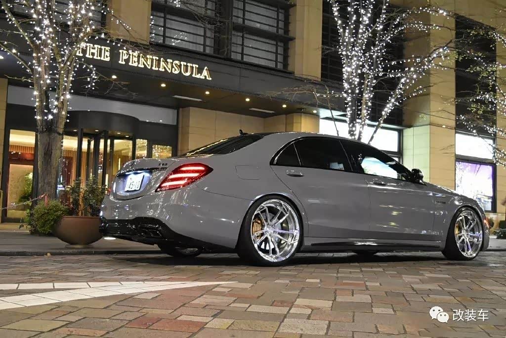 随后全车的镀铬饰条都贴黑了,相信为这台车增加了几分的运动感。但换上的一身水泥灰之后,原本低调沉稳的深蓝色外观瞬间高调了起来。来自22寸的镀铬轮毂更与水泥灰的车身更搭。停在夜景下的东京街头,相信隔着屏幕都能感受到这款梅赛德斯-AMG S63的气场!