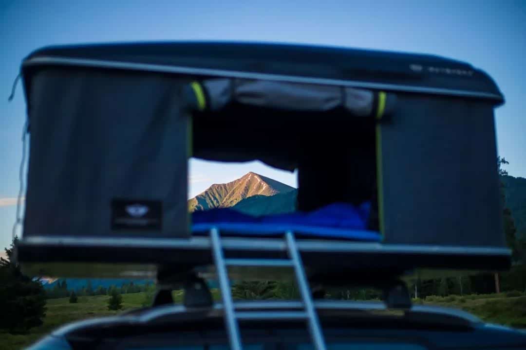 提供有梯子,可以轻松上下,爬上去的感觉就像进入阁楼。睡得高,自然早晨起来第一眼的view就更好。贵重物品锁在车里,人住车顶,既可以防盗又可以避免野外大型动物的骚扰。帐篷的密封和保温也不错,材质也很精良。另外,内部设计也很周到,例如棚顶有专为放外衣的网兜;侧面的杂物袋,可以放鞋子、书和手电筒;还提供有触摸式照明灯;前后左右都设置了可以打开的“观景窗”。