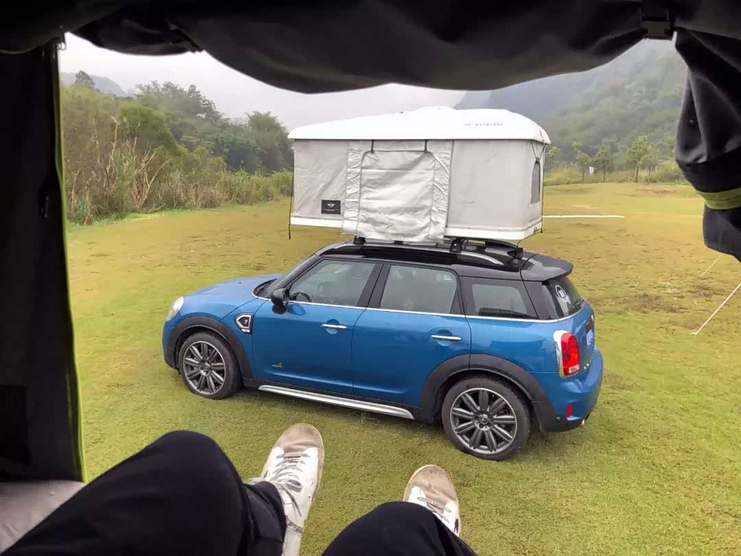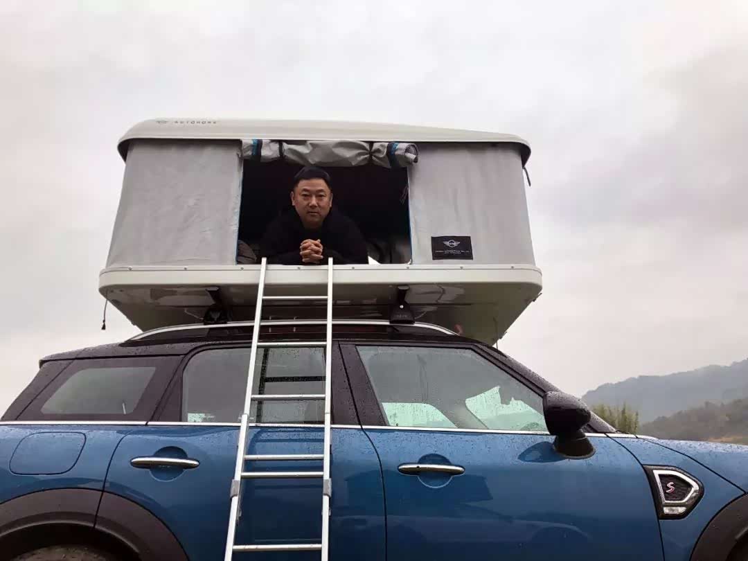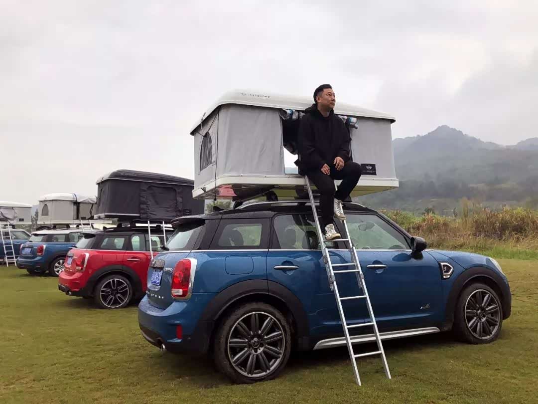 这套帐篷是能折叠的,设计巧思,结构精妙。平常它可以一直固定在COUNTRYMAN的车顶,不用反复拆卸,就像一个车顶行李架。出入地库和高速路收费口也没有问题。不会影响日常用车。