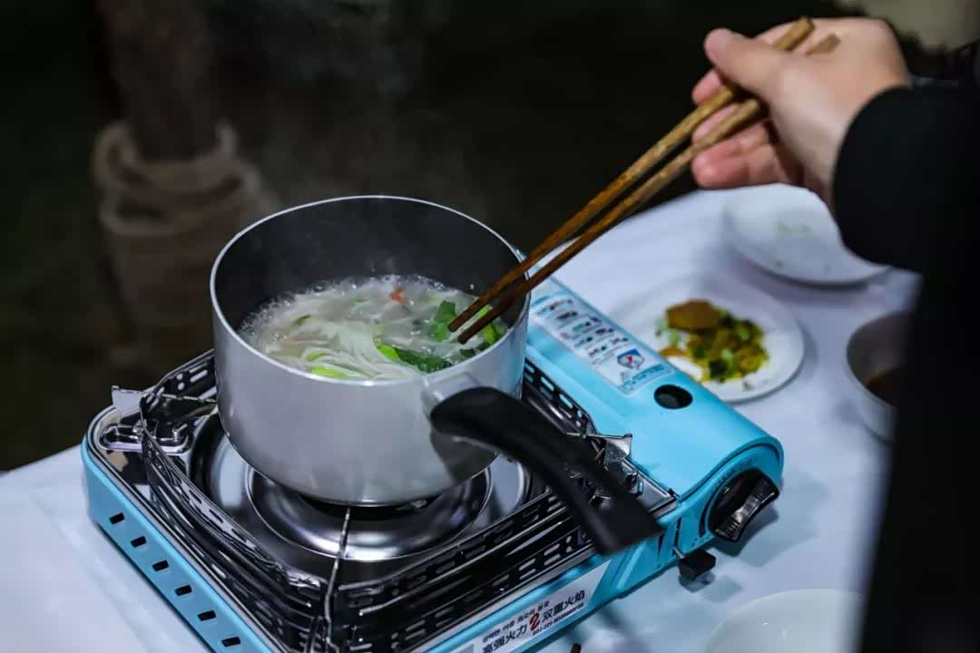 很幸运,我第一次体验“游牧酒店”就赶上了比较恶略的天气。广州冬天郊区的温度居然低到了五、六度,而且还下着雨。不过“游牧酒店”的服务很贴心,帮我们准备了篝火,还有丰盛的晚餐。尤其是可以自己下厨做一碗极其特别的MINI粉——据说是米其林厨师亲自研发、秘密配方的热汤米粉。一碗下肚,真是从头顶暖到了脚心。