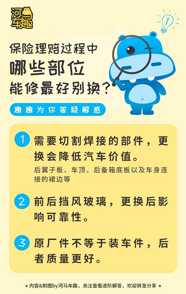 只是说有些时候保险公司对于小损伤不愿意换,从他的角度说是为了省钱,对我们来说只要真的能完全修复那也是不吃亏的。