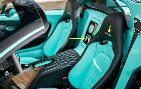 这个2014年定制款,听说这个蒂芙尼蓝是不能随便用的,就相当于现在服装界的联名款的意思,这一次使用的颜色可想价位自然是高到飞起。在车上有很多地方都刻有专属的印记。迎宾条上是蒋鑫的名字,座椅中间印上了大儿子的脚印,凸显自己的父爱,还有座椅枕头等地方,都进行了高度定制。一块碳纤维就要上百万,而在这车上面随处可见,高科技的质感特别明显。