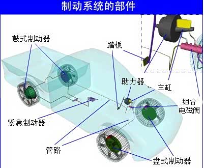 除了以上部件,底盘上还有一个非常重要的组成部分,就是制动系统,毕竟跑得起来,还要停得住。汽车的制动系统一般包括行车制动和驻车制动等两套相互独立的制动系统,现在比较常见的制动机构一般有液压制动和气压制动。