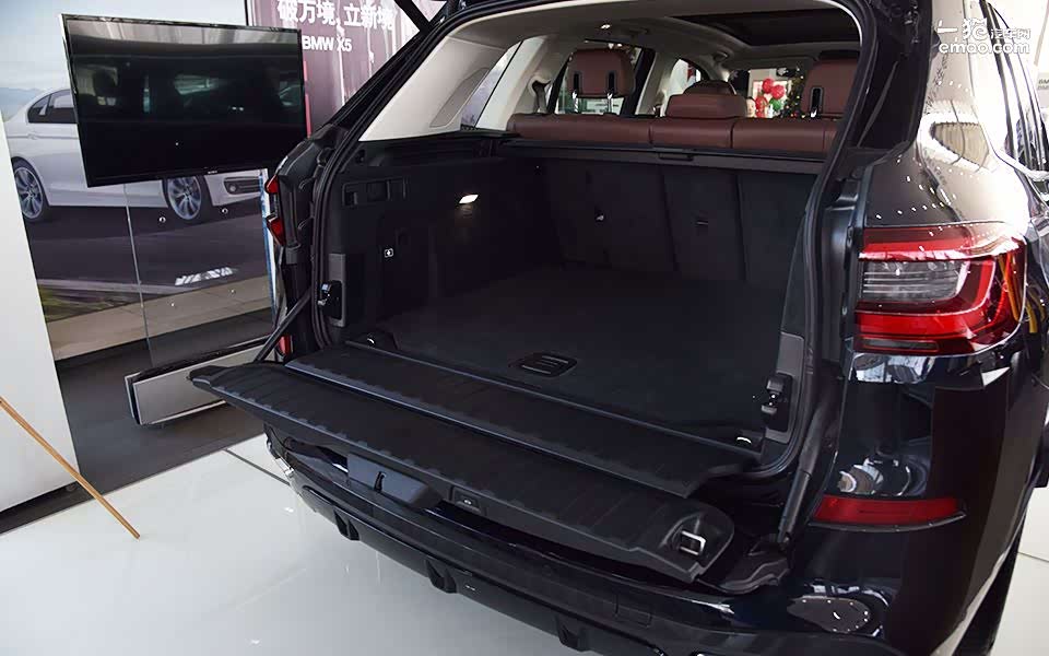 后备厢是全新一代宝马X5空间方面的亮点,采用上下两段式开启,关闭时可对后备厢内物品提供保护,开启后还可起到承托的作用。试想一下,坐在后备厢上在野外钓着鱼,场面一定很惬意(哎,努力搬砖吧)。值得一提的是两段式均为电动开启,提升不少便利性。