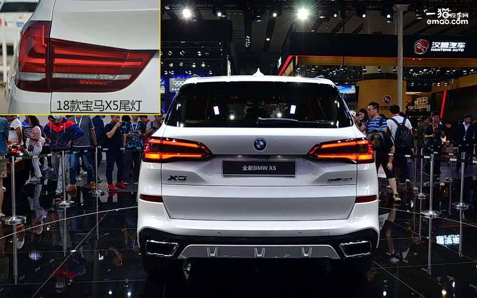 车尾部分,全新一代宝马X5取消了前三代都使用过的L型尾灯,取而代之的是条带式尾灯组设计,视觉效果倒也不错,但辨识度也要降低不少。