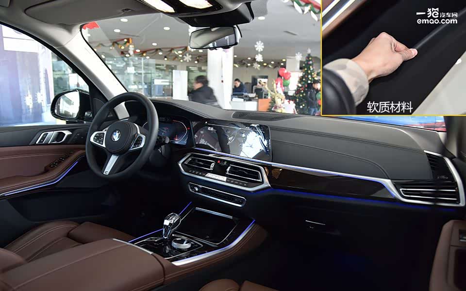 其他配置方面,像是6气囊、主动刹车、疲劳驾驶提醒、远程启动、座椅加热和记忆等功能均为全系标配。而实拍车xDrive40i 尊享型 M运动套装车型还配备了全速段ACC巡航、车道偏离预警、车道保持、HUD抬头显示、哈曼卡顿音响等配置,功能非常全面。