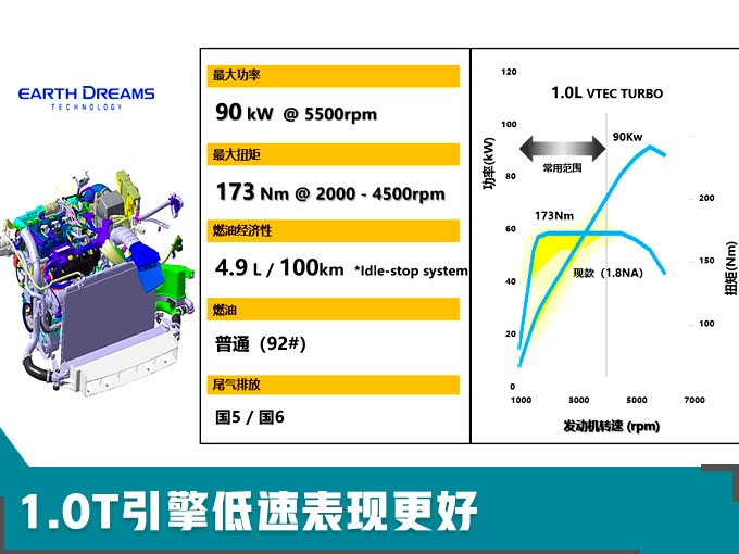 李雄对这款1.0T发动机的技术方面也做了进一步说明:第一,使用小尺寸涡轮增压,响应速度更加灵活;第二,为了实现动力性能和经济性能的有效融合,使用电动泄压阀,在需要供应时不泄压,低功率情况下对增压器进行调整;第三,应用本田VTEC技术,双VTC+进气侧VTEC。三项技术加持,使其节油性能达到最优。