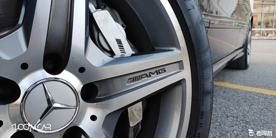 直到你微微转向侧面,看到露出的大脚,才发现这不是一辆普通的W211,素车18寸轮毂并不算大,但一看到样式就知道来历不浅,更重要的是这套卡钳和刹车盘,在信仰LOGO之下,是藏也藏不住的威武。