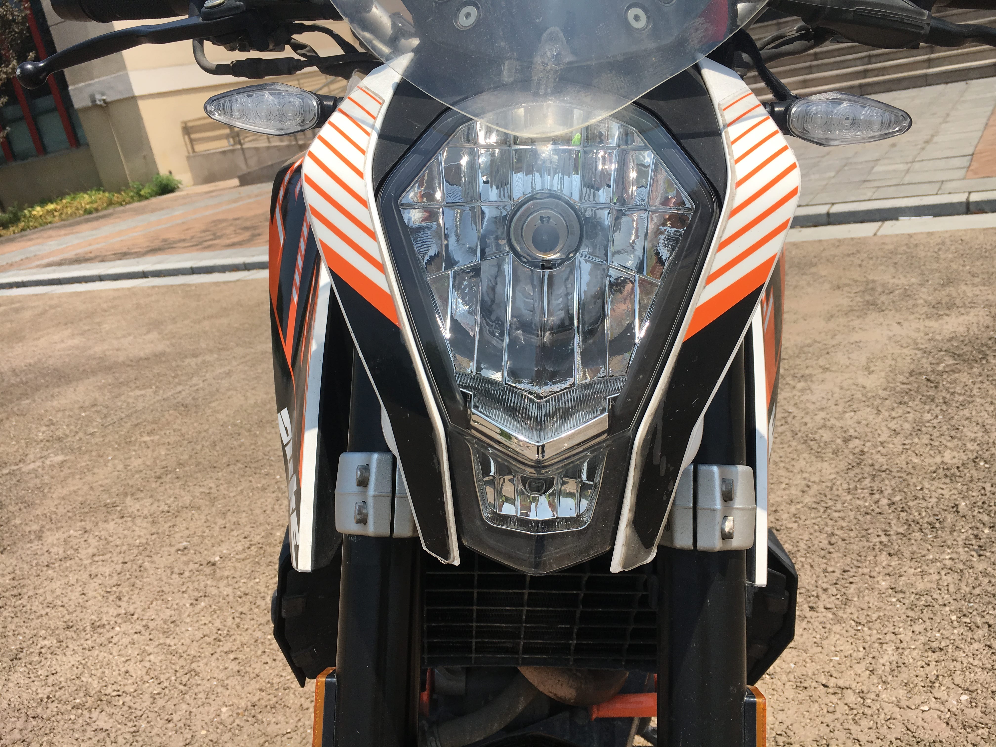 车主给自己的390添加了风挡,在骑行的过程中确实能稍微改善风阻,不过也有问题,急刹车或者加速向前趴的时候头盔总是不经意间碰到风挡,有点安全隐患,视觉效果上加了风档之后也稍显拖沓。