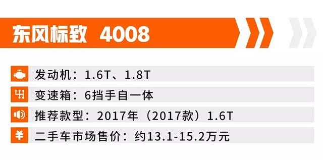 选购建议:给大家推荐2017年(2017款)1.6T 车型。2017年的标致4008是最早的一批国产车型,当时分为1.6T和1.8T车型。1.6T车型就已经够用了,目前市场上2017年的1.6T车型售价在13.1-15.2万元左右。