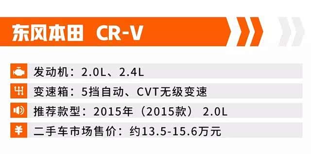 选购建议:这里给大家推荐的是2015年(2015款) 2.0L 车型。2015款CR-V分为2.0L和2.4L,并且有两驱和四驱车型可选。如果是日常家用,那2.0L两驱车型已经足够了。目前2015年的CR-V 2.0L两驱自动挡车型市场价普遍在14.0-15.5万元左右。