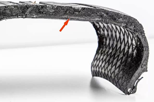 轮胎其实并不只是简单的一团橡胶,轮胎的内部结构设计比较复杂,它是由多层不同材质叠加起来组成的,由外而内分别是胎面花纹、覆盖层、钢丝带束层「2层」、应力吸收橡胶条、胎体帘子布层、气密层。