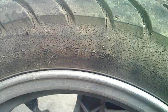 轮胎外层的橡胶经过风吹日晒会慢慢老化的,如何判断轮胎是否老化呢?老化后的轮胎会慢慢出现龟裂,龟裂严重的时候就已经说明轮胎已经老化,老化后的轮胎橡胶变硬,轮胎的抓地力跟弹性会越来越差,刹车距离会变长,轮胎的舒适度也会变得越来越差。胎噪也会变得越来越大。