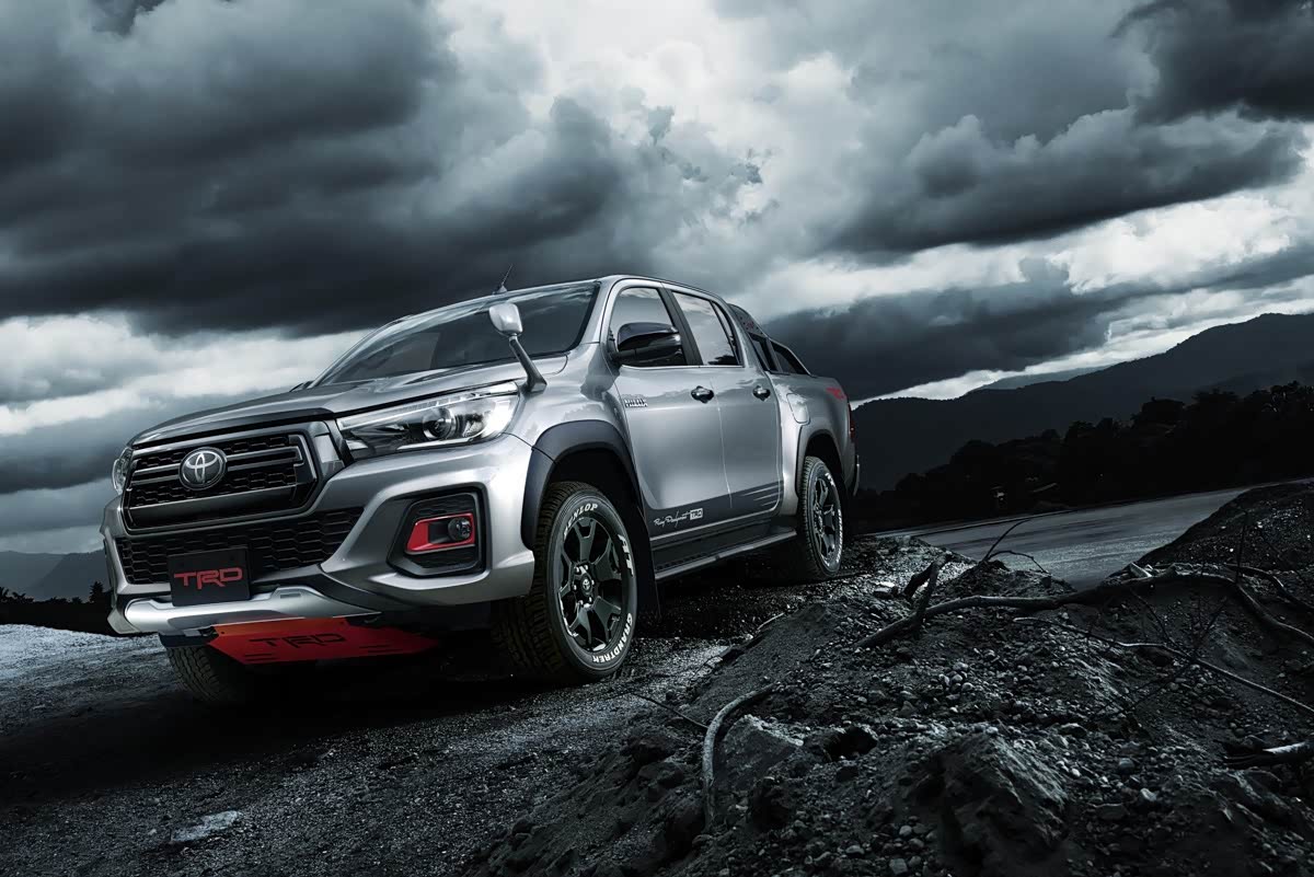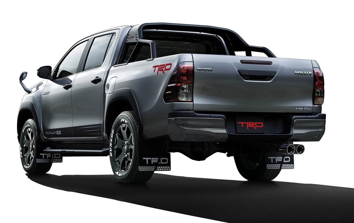 将在明年一月份举行的东京改装车展现身的 Hilux Black Rally Edition 由 Toyota 御用改装部门 TRD 精心打造,在外观上导入了不少越野套件,像是拥有 TRD 字眼的亮红色底盘防刮板、黑色的塑料“爆龟”宽体、更粗旷的车侧踏板、TRD 的大片式越野挡泥板、同样附有 TRD 字眼的帅气后斗护栏等等,而为了让这款 TRD Hilux 更显阳刚,原厂还换上了帅气的网状水箱护罩与进气格栅、备有红色点缀的雾灯座、双出的镀铬排气尾管头、 TRD 车身贴纸以及全黑的运动轮圈搭配 Dunlop 越野轮胎等等,大大提升了这一辆 Hilux 的运动越野气息。