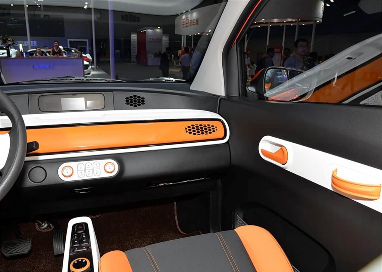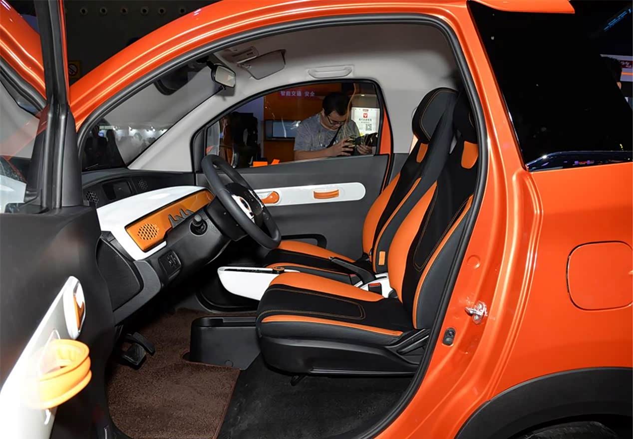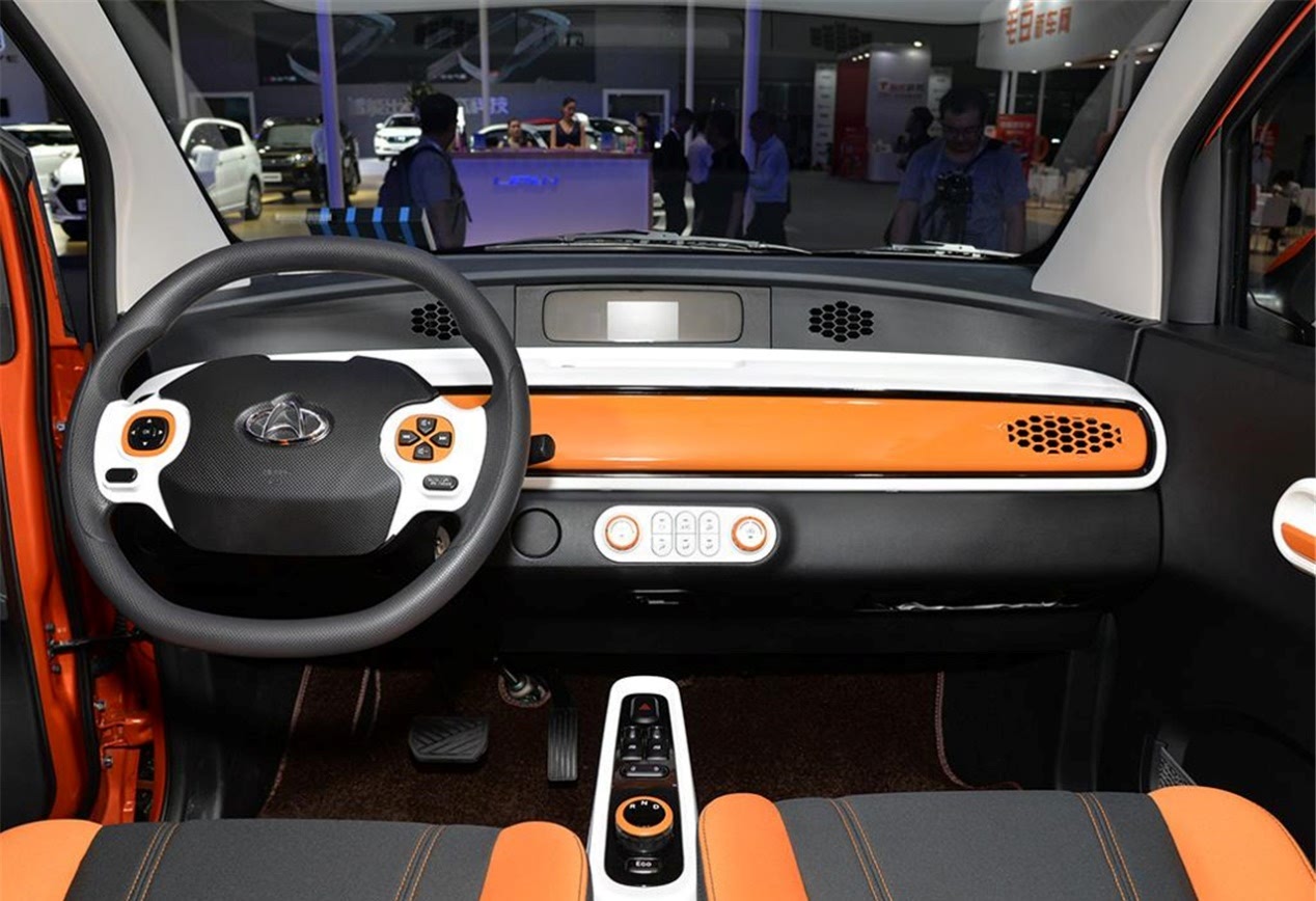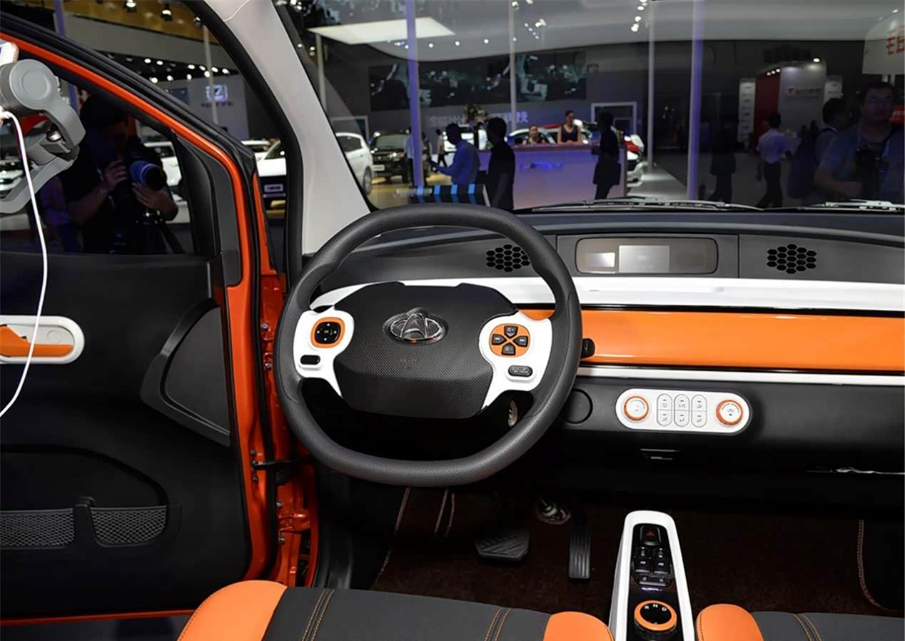车的内饰采用了比较年轻的色彩,黑色加上了橙色的组合,还有白色辅助,让这款车的内饰看上去更加的活泼年轻,只不过这款车的你是比较简洁,两幅式的方向盘,中控部分的装饰也比较简单,标配的都是针织的座椅面料,加上硬塑料的材质,虽然用材不是特别好,但是好在总体看上去比较时尚。身高为175cm的体验者在驾驶座的位置将作为调整好以后,能够在头部预留出来四指的距离。而且车内采用的配置有冷暖空调、GPS导航和后视镜等一些比较基础的设备,两座版的车型好像对于驾驶位乘坐的空间来说,一般都不会出现太大的问题。