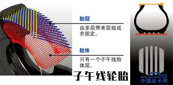 R的位置是胎体结构标识,是Radial子午线轮胎的缩写。相较于斜交轮胎,子午线轮胎的接地面积大、使用寿命长,高速回转时也不容易发生“驻波”现象(由于轮胎高速旋转而产生的自发形变),子午线轮胎已经广泛应用于轿车、SUV以及皮卡上。