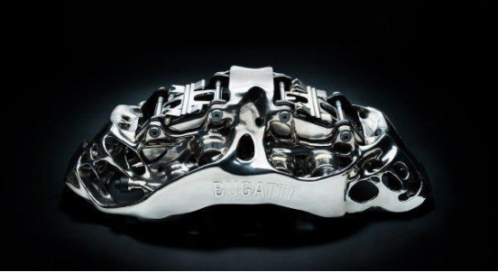 在3D打印过程中被加热到700摄氏度,打印持续大约45小时。每个前卡钳上有八个钛活塞,每个后卡钳上有六个钛制活塞。 建筑的新仿生设计结合了最小的重量和最大的刚度,每毫米能够承受125kg的压力,卡钳仅重2.9kg,而目前使用的铝部件重量为4.9kg。鉴于目前Chiron的卡钳光喷个漆就要价3000欧元,再加上45个小时的工时人力,其售价简直让人无法想象。布加迪汽车公司技术开发部门新技术主管Frank Gotzke表示:“在产量方面,这是用增材制造方法生产钛的最大的功能部件,每个人都会对这个部件感到惊讶, 尽管尺寸很大,但从技术上讲,这是一个非常令人印象深刻的制动钳,而且看起来也很棒。 ”