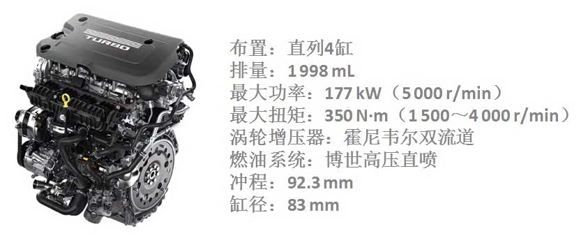 据LSY副总工程师Kris Keary介绍,目前凯迪拉克的重点研发方向在于提高该款LSY发动机的效率和低端扭矩响应。在1 500 r/min时,其可实现350 N•m的全扭矩输出,并且将该扭矩输出状态持续到4 000 r/min,以此提高驾驶趣味性。在5 000 r/min时,LSY还可达到97%的峰值扭矩。霍尼韦尔生产的小尺寸涡轮增压器是确保扭矩曲线实现该输出状态的关键所在。凯迪拉克可以布设一个大型涡轮增压器来实现与竞争机型相持平的功率数值,但为此还需权衡随之而来的涡轮迟滞现象,通过使用该小型增压器,即可获得平稳的扭矩曲线。与原机型相比,LSY具有更强的动力性能且响应更快速。由于在运行过程中,使用发动机峰值扭矩比峰值功率更频繁,因此LSY的功率值有着较好的竞争性。