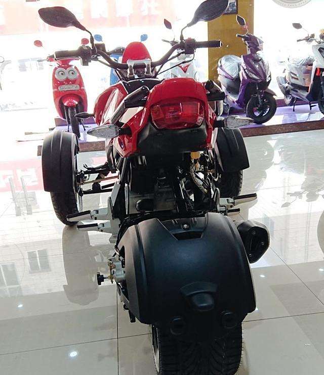 外观方面,前二后一的设计,是标准的“倒三轮”身材,而且个性的造型让它看起来有种小怪兽的感觉,也因此被网友封为国产“庞巴迪”。同时,较大的前轮距营造出很好的正面厚重感,双圆形大灯,红色车身搭配经过加宽处理的大尺寸轮胎,配上不锈钢的排气管,让它看起来十分显档次。