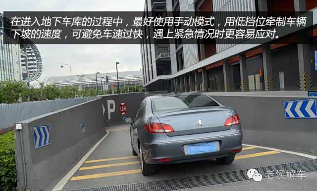 在地下车库斜坡(尤其是那些陡坡或螺旋形斜坡)行驶时,为确保安全,车速必须慢下来,此时可使用1挡缓下坡,充分利用发动机制动控制车速。