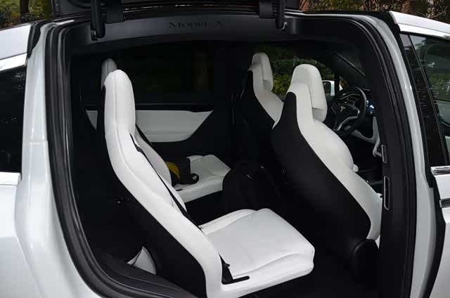 得益于硕大的SUV版本,Model X 100D的车内空间很大,驾乘感受十分优异。在空间布局上,它提供了四种方案,分别是五座、六座、七座以及六座配备中央扶手版本,不论哪个版本,第一排和第二排座椅提供的空间都相当充盈,1米8的同事翘起二郎腿坐在副驾驶,双手背在脑后,样子十分得瑟。