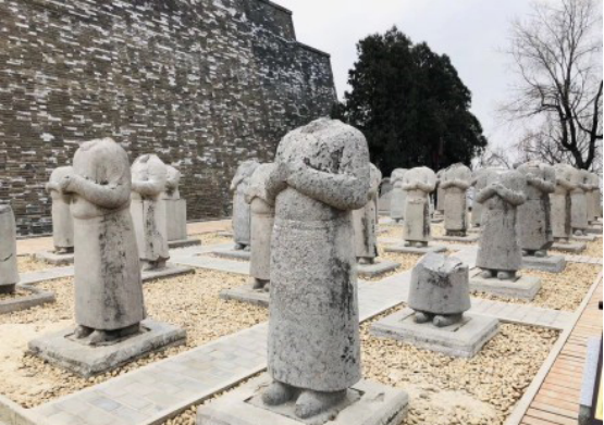 民族村旁边就是唐高宗李治和武则天的合葬陵,建在梁山上。主要以石刻为主,比如武则天的“无字碑”、记录唐高宗功节的“七节碑”,里面有马车和骑马两种方式游览,后来我们决定坐马车体验一下古时皇帝出巡的感觉。