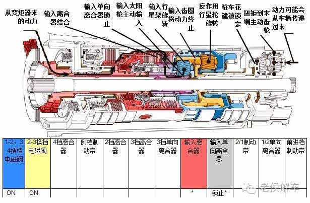 上面我们了解到,一组行星齿轮有着怎样的变换形式,而负责变换,以及用来输入输出的元件,就是一系列的执行器:离合器、单向离合器、制动器。有了这些执行器,就可以将行星齿轮进行不同组合,从而配搭出不同的动力流,也有了不同的传动比。而控制这些操作的,就是与其配套的油泵、滑阀、液压活塞,以及复杂的液压线路。