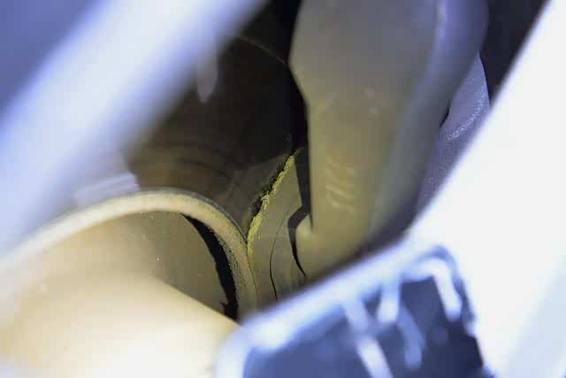我围绕车子看了一圈,这个似乎是全车唯一值得指出的外观瑕疵,有蹭伤痕迹,外观要求高的诺粉,买到后,可以追加钣喷项目,多花几百块钱把这里修掉。