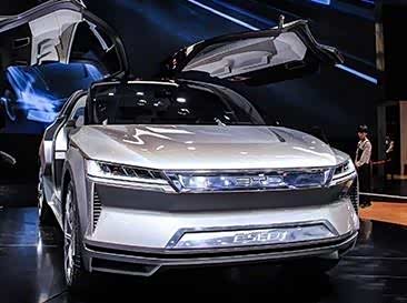 作为一款纯电动的SUV,比亚迪的这款车在传统的进气格栅处采用了封闭式设计,并且上下部格栅的内部都加入了氛围灯,上部格栅的灯组点亮之后显示的是“BYD”字样,下部格栅的内部则是E-SEED的样式,配合上两侧矩阵排列的LED灯组,整个前脸的辨识度是非常的高的。车身侧面的设计上亮点还是比较多的,巨大的鸥翼式车门增强了这款车的科技感以及时尚感,一体式的侧面车窗有着不错的开阳感,而且为了迎合这种设计,传统的B柱,C柱都被相应的取消了。轮毂方面是采用了中国传统的龙元素的设计理念,五幅式的合金轮毂整体呈现出来的是一种“龙爪”的造型,看起来孔武有力。至于尾部的话就是和前脸相对应的造型了,中部是一根贯穿式的尾灯组,其辨识度同样是比较高的。