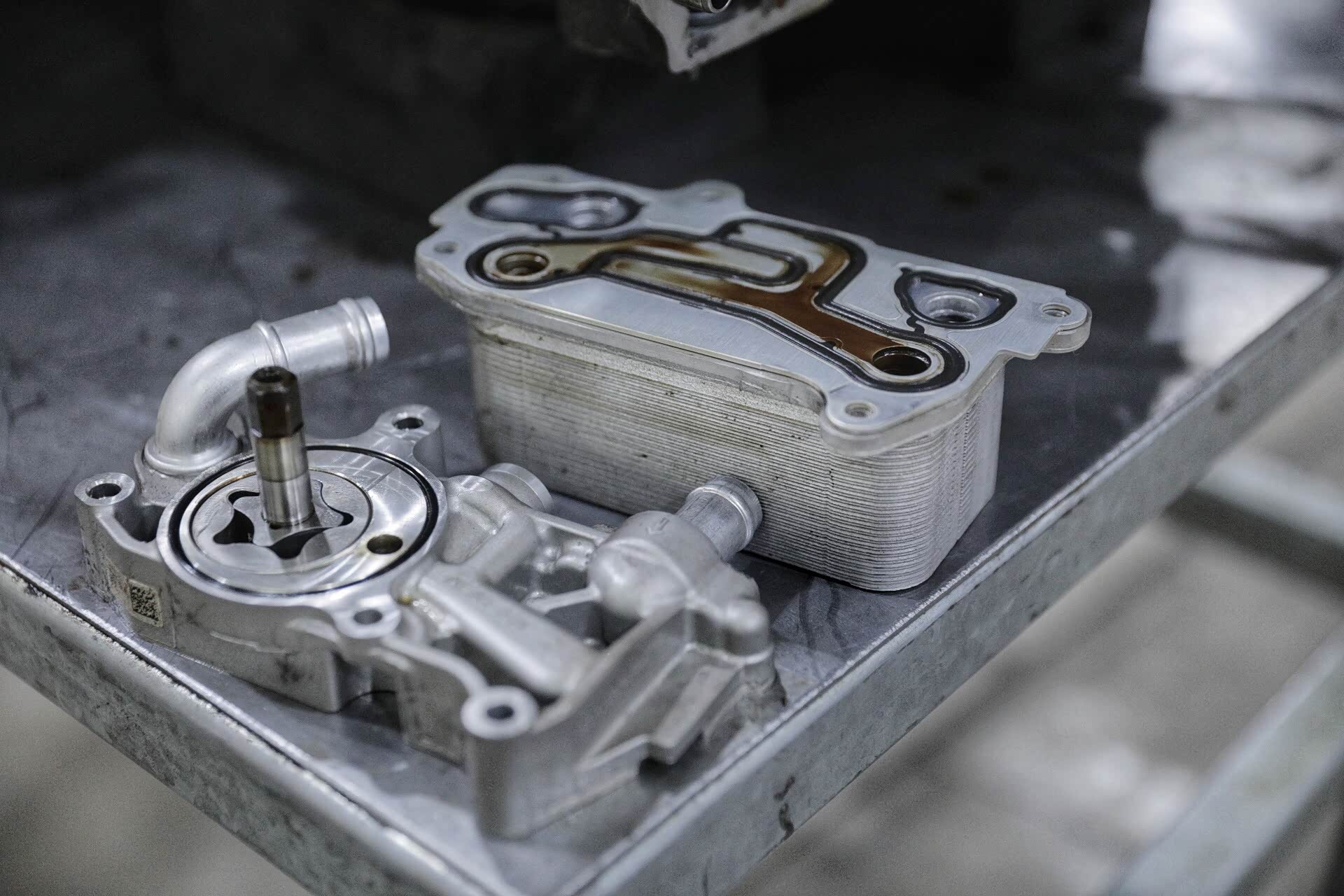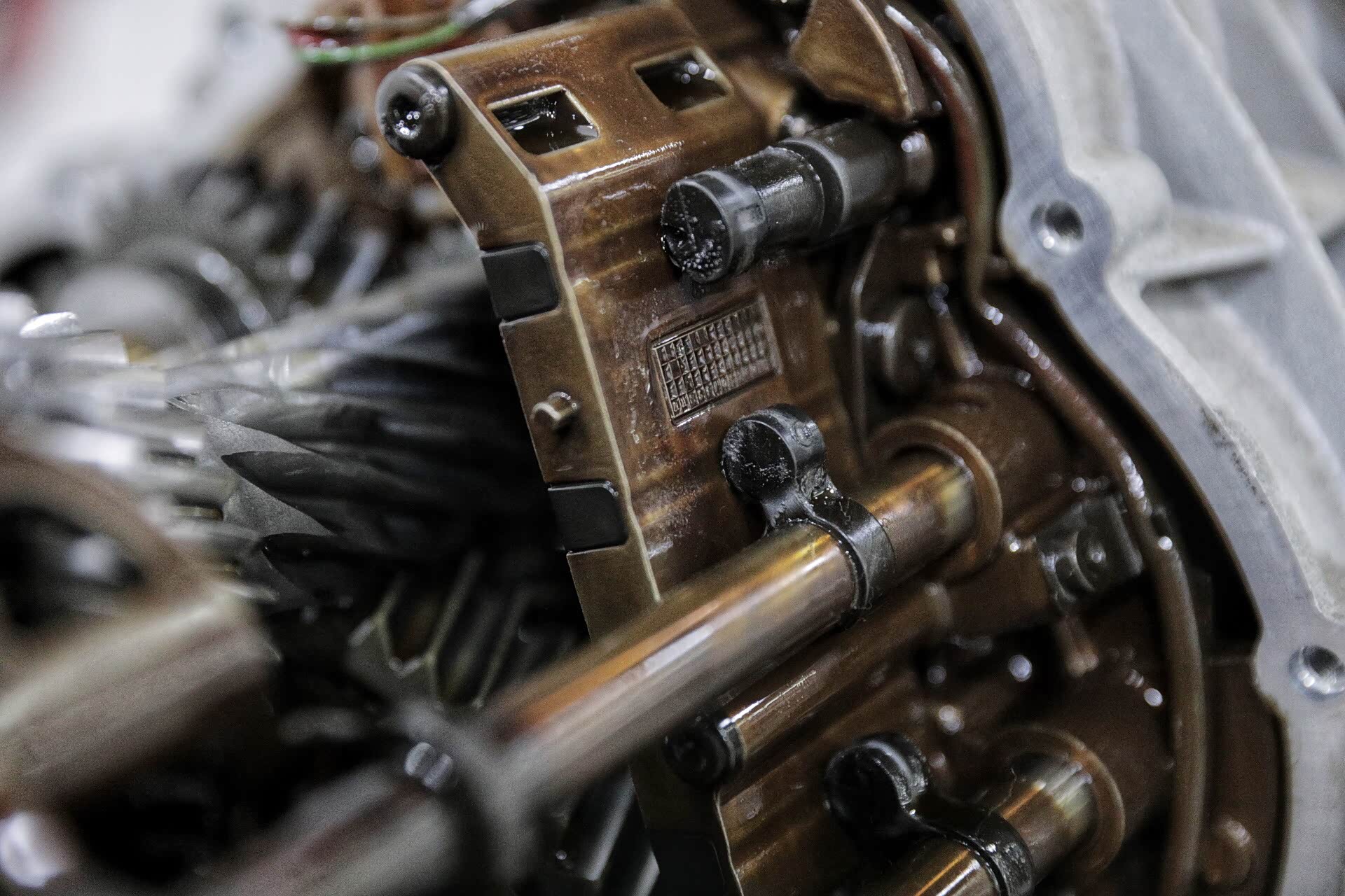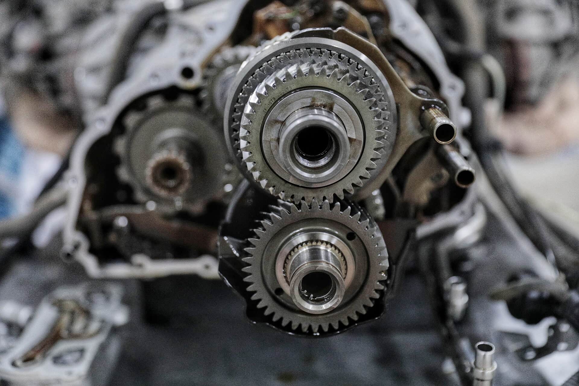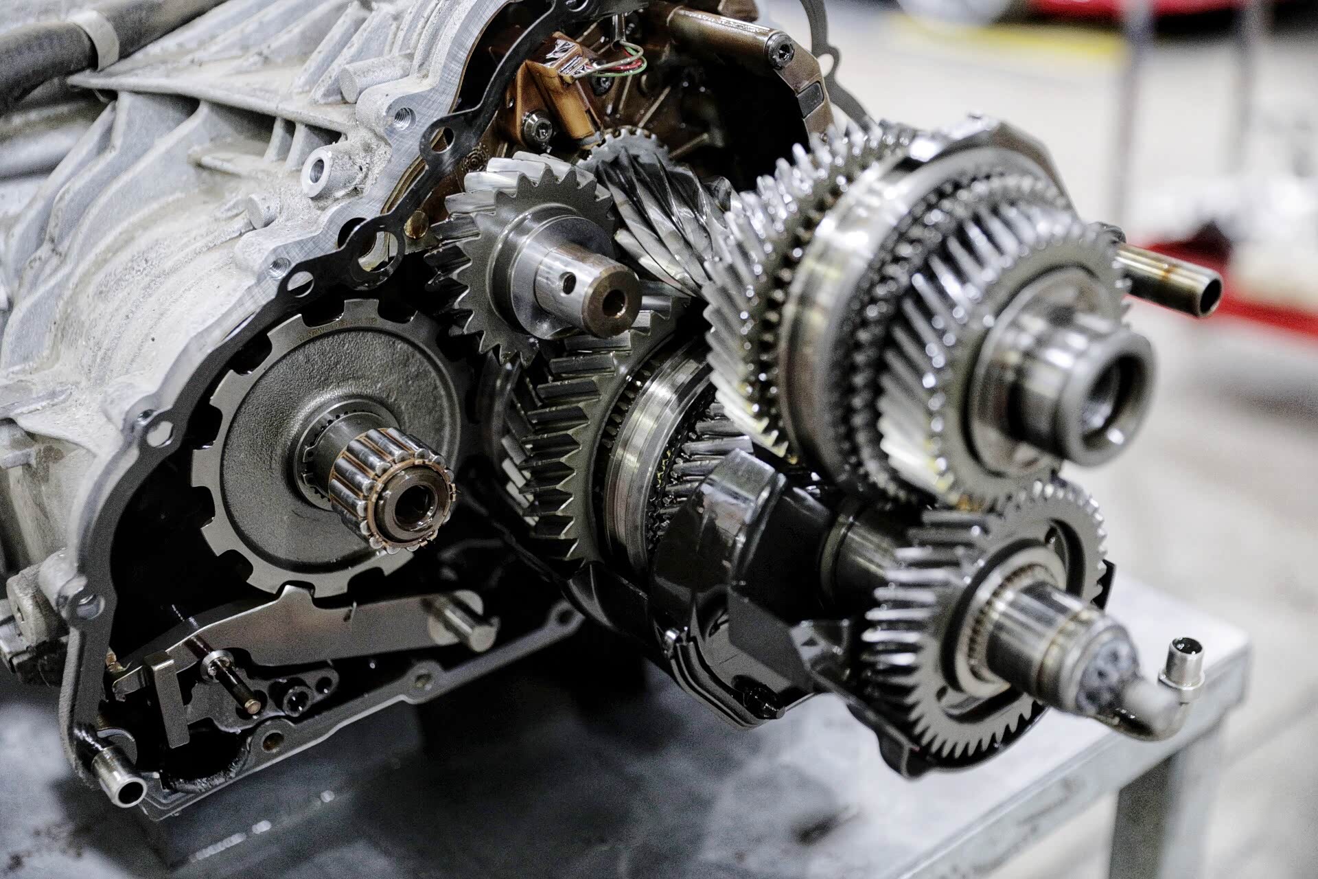 打开的变速箱可以清晰的看见两根主轴,一根为1、3、5、7挡齿,另外一根为2、4、6挡齿,倒车挡齿单独控制。其实这些看似很平常,但真正核心的东西是换挡执行器。这辆车的换挡执行器相当昂贵,不仅仅是因为材质以及货源的问题,更多的是缜密的换挡执行逻辑。