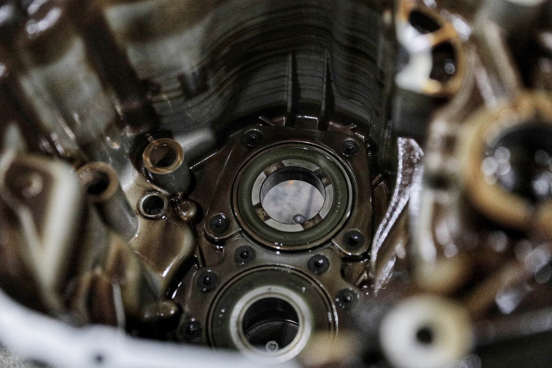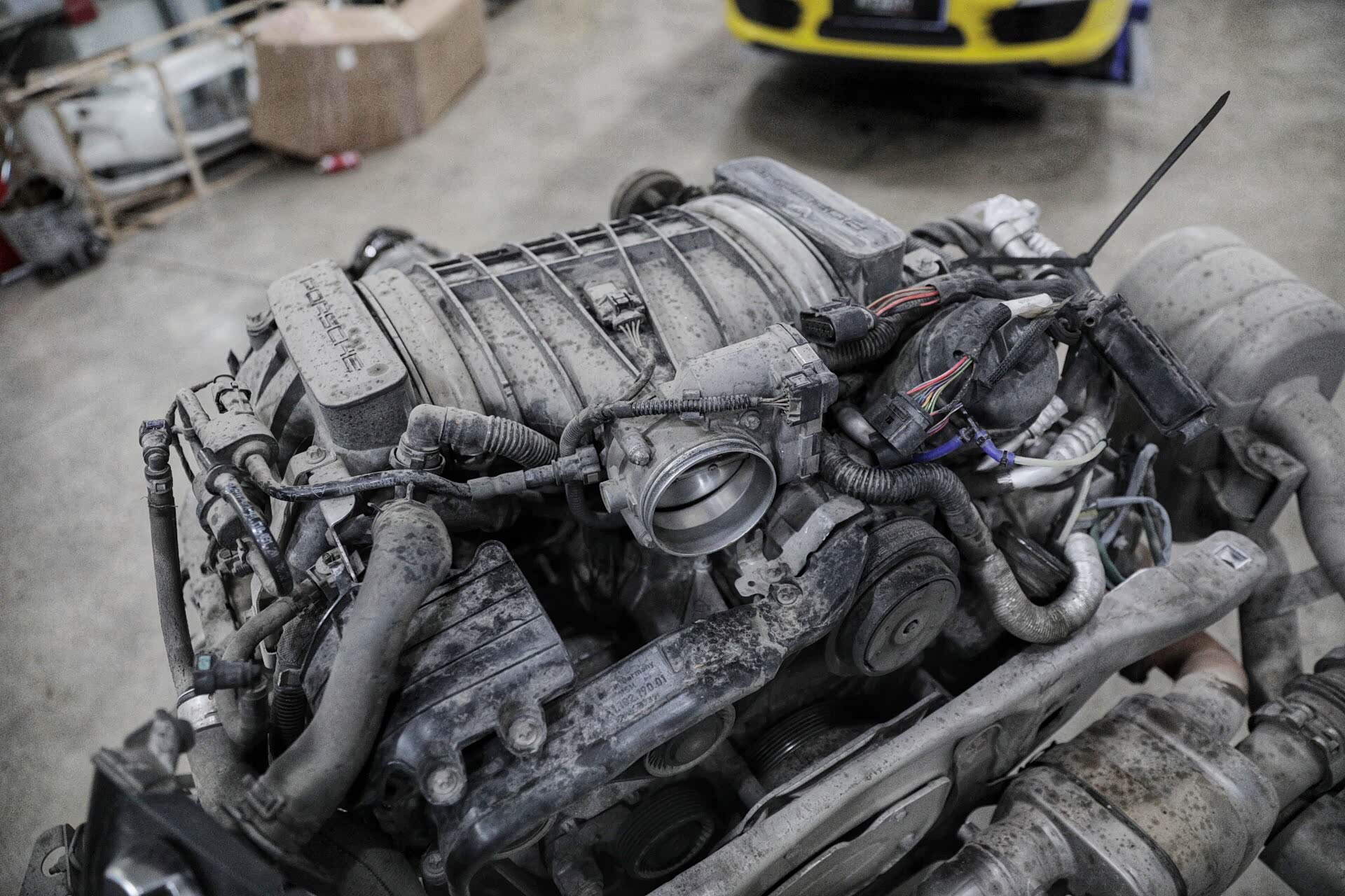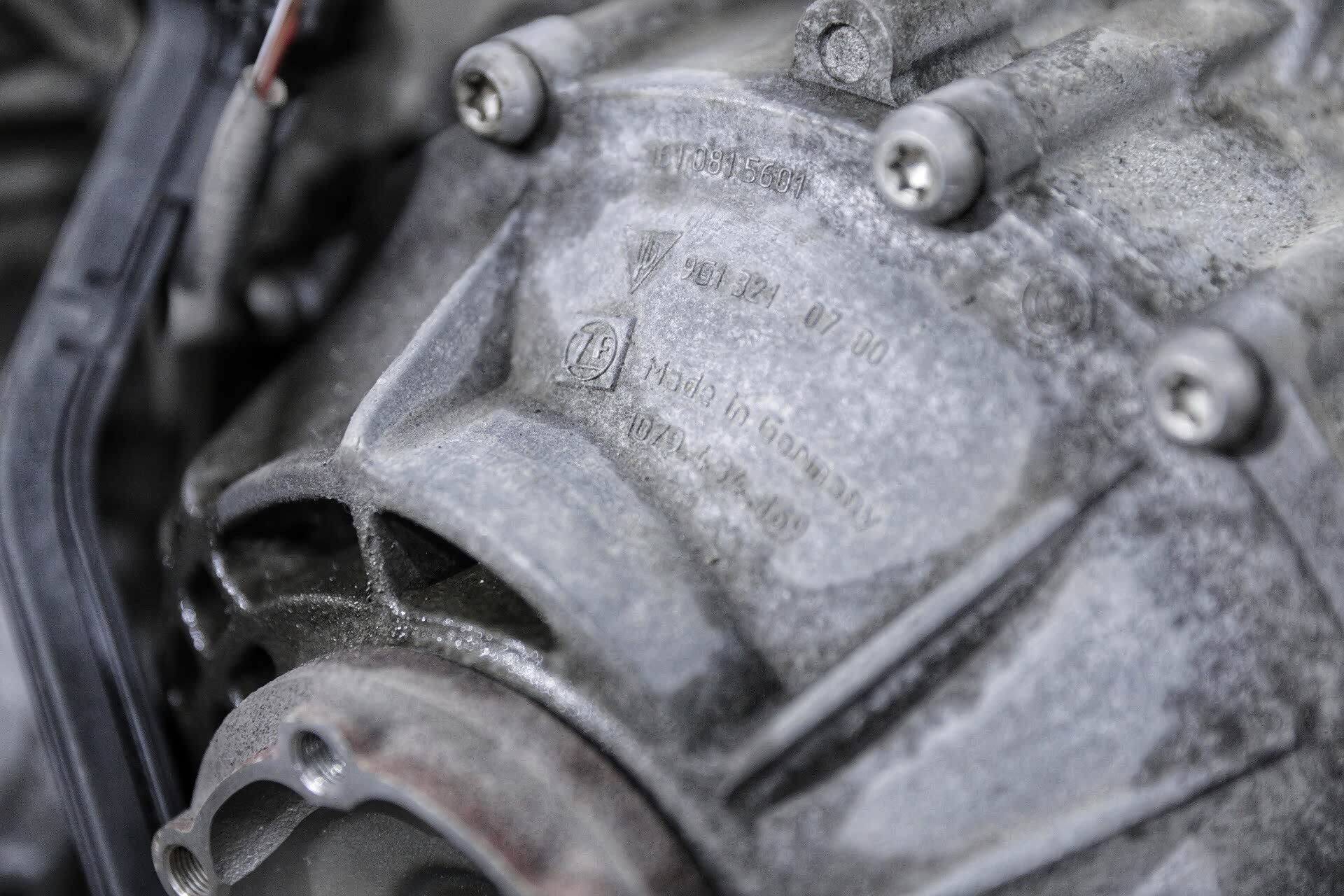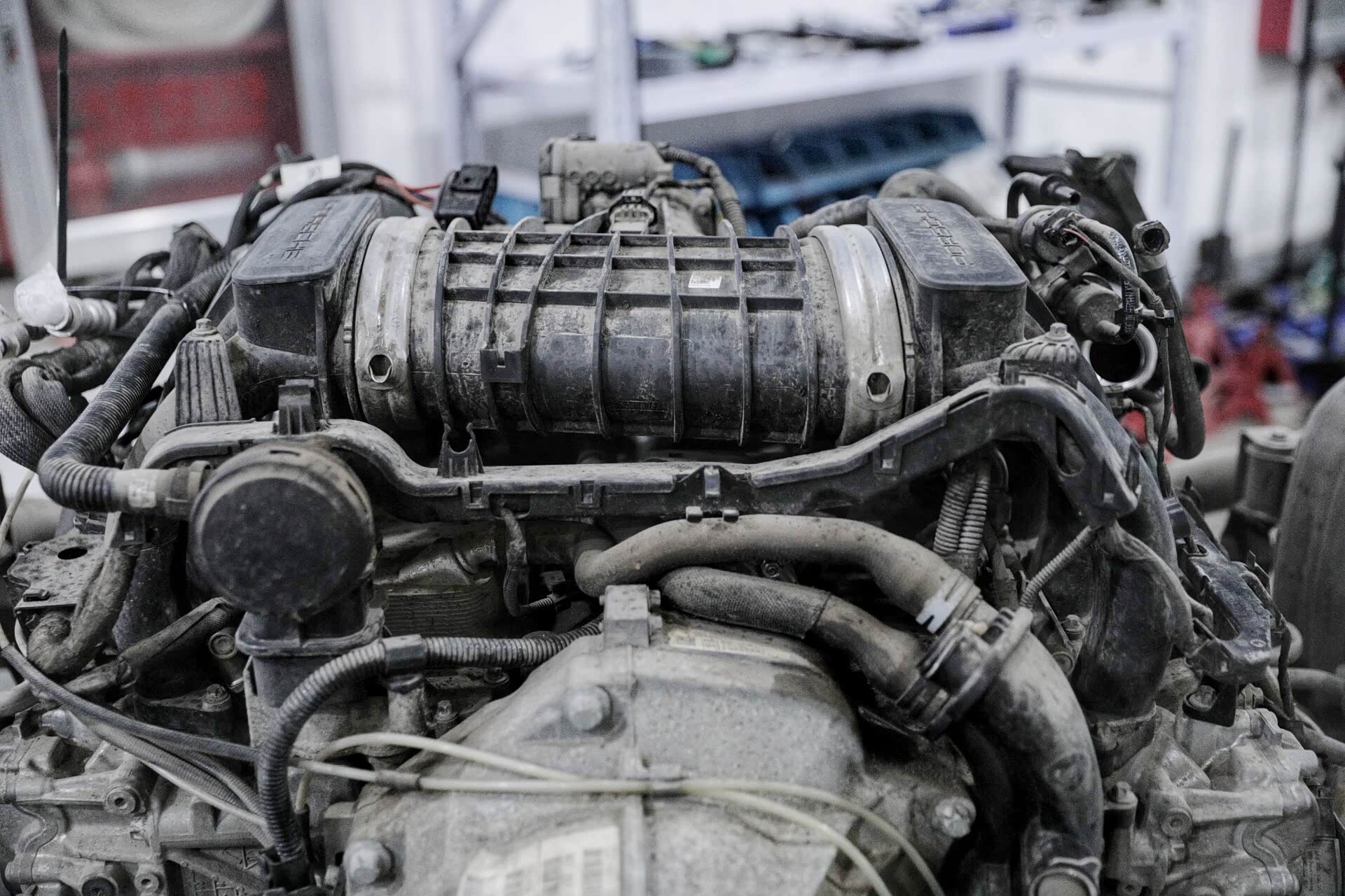 按照之前的说法,在很多情况下维修保时捷911车型都需要将动力总成摘下来进行。当然,今天的这种情况一定要进行摘下来并且进行拆解才可以进行维修,但之前网络间说的换火花塞、点火线圈、皮带都需要摘发动机我觉得大可不必,因为在专用工具的协助下只需要拆一些附件即可。