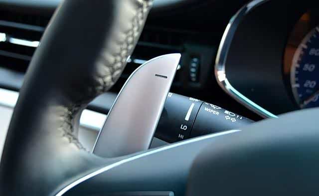 位于左方向盘和右方向盘后方,左右各一,分别负责加减挡。换挡动作很简单,就一个字:拨。首先找到手动模式这个按钮,然后将换挡杆推到“D”位,再通过拨片加减挡数。也就是先将挡杆设置成手动模式,然后在发动机转速适合的时候,利用拨片把挡数拨到理想档位。