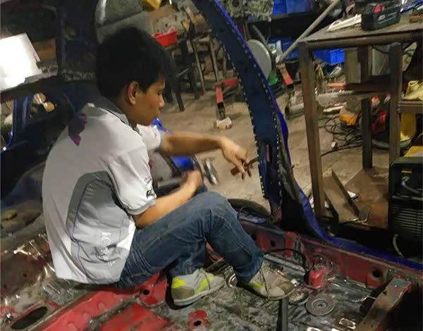 刮骨疗伤手术开始:钣金小哥拿起了手术刀,除锈,打补丁,钣金电焊铁皮等“里里外外、上上下下”全部处理,一点都不能留,这样才能还EVO 6一个健康的身子骨。