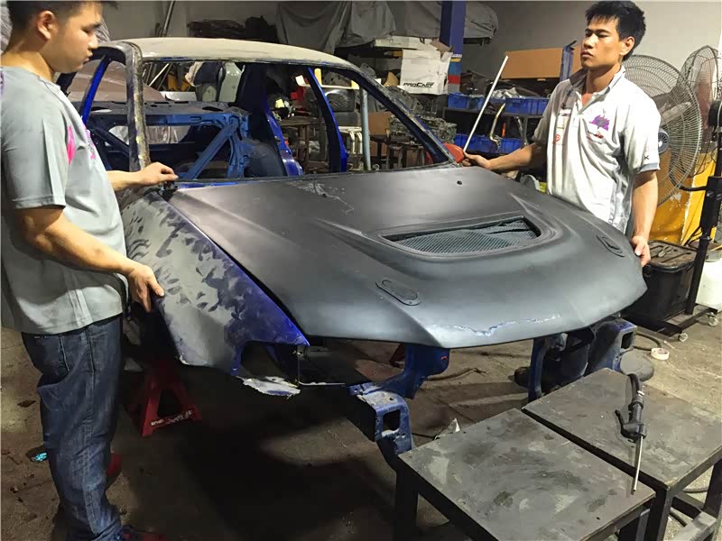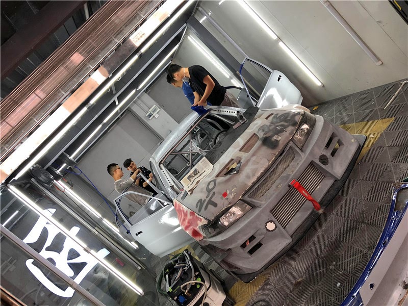 钣金师傅们加班加点开始脱漆工序,以其说漆匠的师傅们是钣金喷漆师,不如说他们更像是一群工匠雕刻师,慢慢的把这个EVO6 战神的灵魂招唤出来。