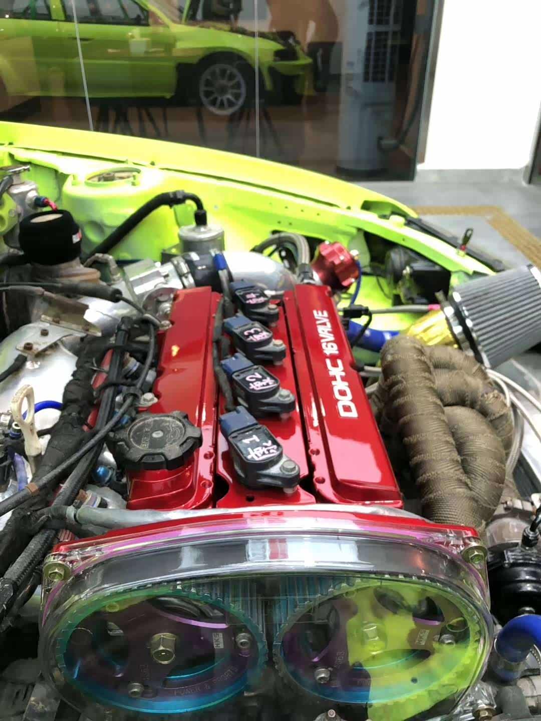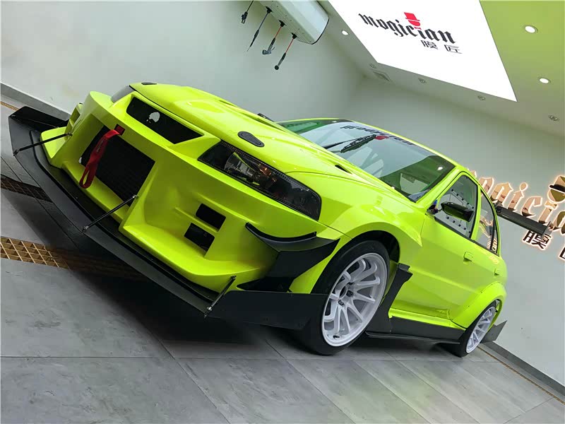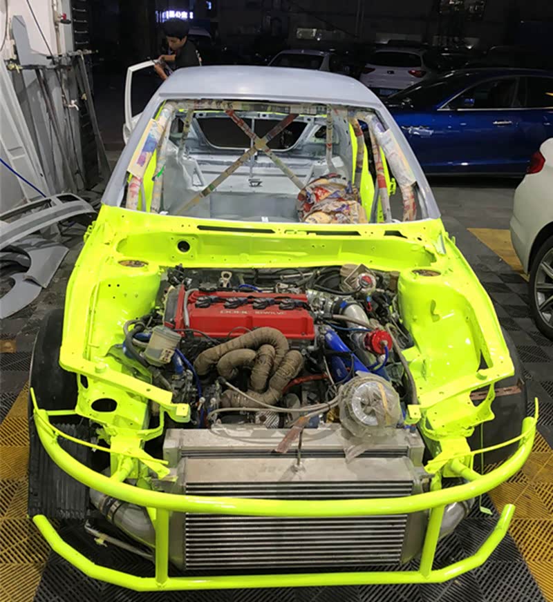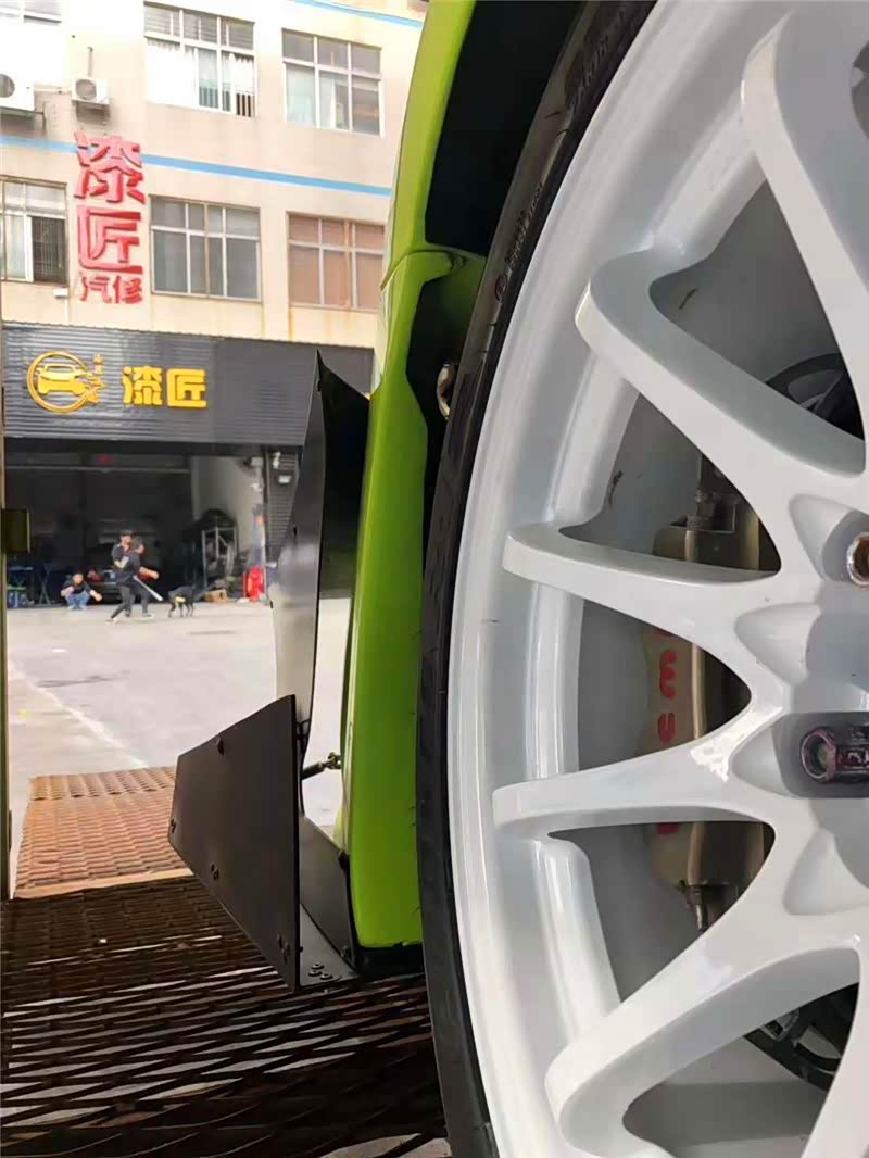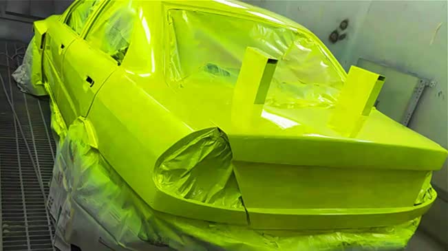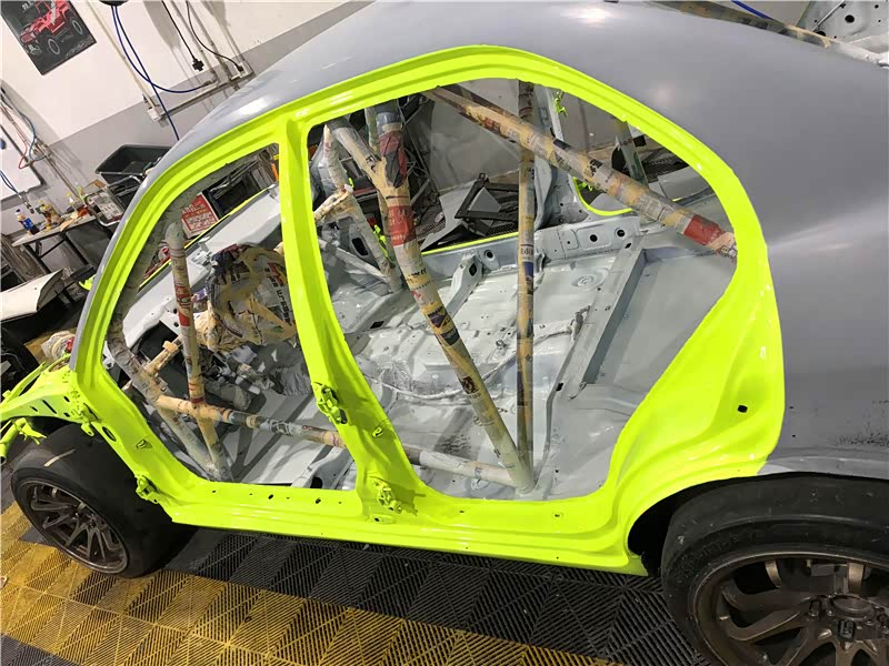 喷涂色漆,车主选用的是私人定制的,特效“荧光绿”车色。