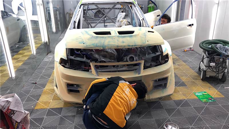 看到这或许你认为,这台EVO6已经翻新修复完工了?NO!!!这只是万里长征走完了三份之二,车主为了赶场,只好暂时暂停了下一步的修复工作。