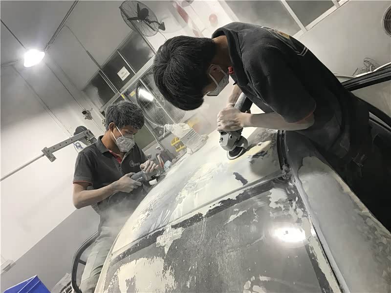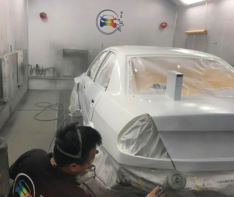 中途底漆有效增强色漆附着力和漆面的平整度,等第二天干了以后,在进行全车打磨及沙眼处理,漆面打磨平整,细心的将细小的每一个问题都处理到极致,这也体现了漆匠的匠人精神。