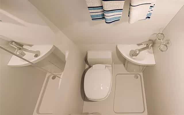 卫生间改变人们对于房车卫生区域的观念,900×900×1700mm带来淋浴的空间体验非常不错,体型稍大成年人依旧轻松自如,塞特福德便携式马桶、不锈钢淋浴喷头、顶置换气扇依旧配备。