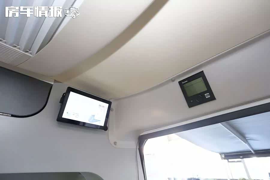 中控面板面板位于厨房左上方,车内的电器、灯光等均可在此处调节。