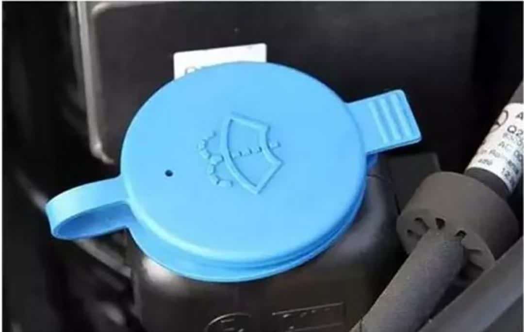 大部分汽车的玻璃水壶都是在靠近前保险杠,这个水壶就是玻璃水加注口。