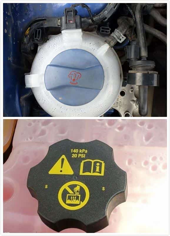 这个水壶一般在发动机左边,而且算是发动机舱内最大的一个水壶了,防冻液(冷却液)的液体是粉红色或浅蓝色的。
