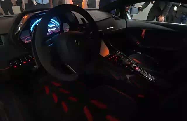 座舱内的液晶仪表盘十分炫酷,中控的一块超大的液晶屏幕,也是兰博基尼所有车型中的中控屏最大的。